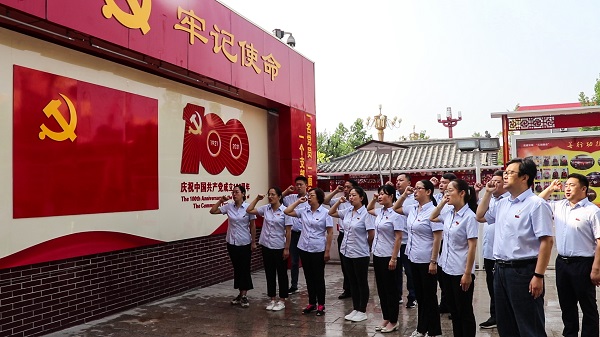 為紀(jì)念中國共產(chǎn)黨建黨100周年,繼承和發(fā)揚(yáng)黨的光榮傳統(tǒng)和優(yōu)良作風(fēng),6月26日上午,三分公司機(jī)關(guān)第一、第二黨支部組織機(jī)關(guān)20余名黨員干部赴正定塔元莊,開展“發(fā)揮支部堡壘作用 永葆黨員先進(jìn)本色”主題黨日活動。本次活動主要分重溫入黨誓詞、參觀塔元莊同福鄉(xiāng)村振興六位一體展廳兩個部分。