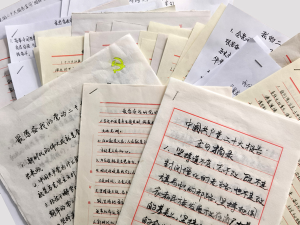 為進(jìn)一步加深黨員職工對(duì)黨的二十大報(bào)告的學(xué)習(xí)理解,推進(jìn)黨的二十大精神進(jìn)頭腦、進(jìn)思想,2022年11月26日至12月10日,公司黨委組織開展“最感奮我的黨的二十大報(bào)告金句”推薦活動(dòng)。 通知一經(jīng)下發(fā),雖處疫情居家辦公期間,但大家的積極性絲毫不受影響。公司領(lǐng)導(dǎo)班子成員率先垂范,結(jié)合參加國(guó)務(wù)院國(guó)資委培訓(xùn)中心學(xué)習(xí)貫徹黨的二十大精神網(wǎng)絡(luò)培訓(xùn)班學(xué)習(xí)收獲,原原本本學(xué)習(xí)黨的二十大報(bào)告原文,共推薦金句112條。黨員職工認(rèn)真學(xué)習(xí)黨的二十大報(bào)告,深刻理解報(bào)告中的新論斷、新要求、新部署,懷著崇敬的心情,一字一句工整地抄寫著金句,并表示,作為國(guó)企職工,要深入學(xué)習(xí)貫徹黨的二十大精神,立足本職、積極工作。十分公司王帥表示,通過(guò)摘抄黨的二十大報(bào)告金句,又是一次原原本本學(xué)習(xí),通過(guò)抄寫,對(duì)報(bào)告內(nèi)容又有新理解、新收獲,中國(guó)共產(chǎn)黨為人民謀幸福,從來(lái)都是動(dòng)真情、出實(shí)招、辦實(shí)事。“作為一名黨員,要當(dāng)好干事先鋒員,以?shī)^發(fā)有為的姿態(tài)抓工作落實(shí)。對(duì)照黨的二十大的法治要求,響應(yīng)黨的二十大的號(hào)召,我們要做社會(huì)主義法治的自覺(jué)遵守者、堅(jiān)定捍衛(wèi)者。”六分公司劉生說(shuō)。五分公司丁江霞更是在認(rèn)真抄寫黨的二十大報(bào)告原文的同時(shí),把自己朗誦的黨的二十大報(bào)告金句錄制下來(lái),發(fā)送到自己的社交平臺(tái),讓更多的人投身到黨的二十大報(bào)告學(xué)習(xí)中來(lái)。 本次活動(dòng),每名黨員職工分段分條推薦并把黨的二十大報(bào)告中讓自己最受感動(dòng)、最受啟迪、最受鼓舞、最受激勵(lì)的原文,用筆抄寫到紙上,每人最少10條,不設(shè)上限。用腦思考、用手抄,手腦并用,學(xué)習(xí)更高效。經(jīng)統(tǒng)計(jì),共計(jì)523名黨員職工參與,累計(jì)推薦金句5530條,最終公司黨委擇優(yōu)評(píng)選出19個(gè)作品給予表彰獎(jiǎng)勵(lì)。(黨委宣傳部)
