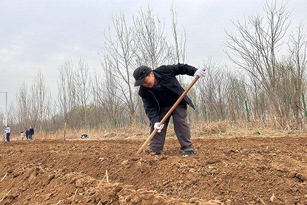 “先把自家的地壟耙起來,然后把地摟平!”在種植基地,不時傳來李懷生指導大家的聲音,各單位積極響應,熱火朝天地掄起耙子等農(nóng)具,在各自地塊開始了種植前的準備工作。當李懷生請來種植基地的技術人員時,大家紛紛上前認真聽講。技術人員向大家詳細講解了針對不同種子如何掌握挖坑深度、種植方式、覆膜等需要注意的事項后,大家個個干勁十足,全身心地投入到播種當中。種植完成后,大家打開澆灌的水龍頭,咕咕的水流進了耙好的一塊塊地畦里,這一刻,大家共同的期待一定是在這片土地上,能夠看到這些綠色蔬菜的成長與豐收。