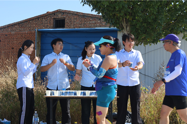 賽道上,秩序維護組的志愿者們化身“最熱情的指引者”。看到選手因路線不熟悉放慢腳步,立刻快步上前微笑指引,同時大聲喊出“加油!前方500米補給站”;遇到年長選手體力不支,主動遞上溫水,輕聲叮囑“調(diào)整呼吸,堅持就是勝利”。補給站內(nèi),志愿者們更是以“秒級響應(yīng)”服務(wù)每一位選手。左手遞水杯、右手遞紙巾,動作連貫嫻熟,還不忘根據(jù)選手狀態(tài)送上鼓勵:“您跑得真棒,加油!”一句句溫暖的話語、一個個有力的手勢,讓選手們瞬間充滿力量。“聽到志愿者喊‘加油’的那一刻,感覺腿上又有了勁,他們比我還在意我的成績,特別感動。”一名首次參加馬拉松的年輕選手笑著說。