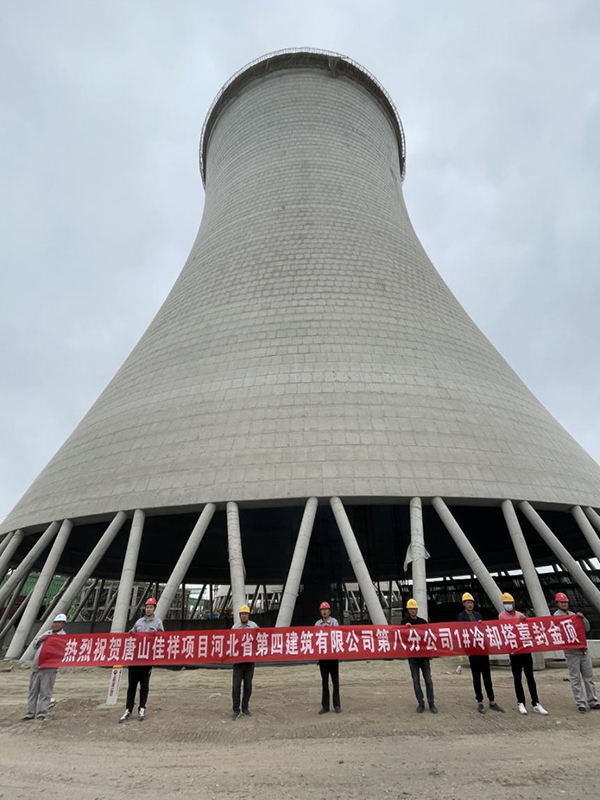 5月16日9點,在喜氣洋洋噼里啪啦的鞭炮聲中,八分公司承建的唐山佳祥焦電項目1#冷卻塔歷經(jīng)85天,完成筒身施工,順利封頂,實現(xiàn)了八分公司在項目建設新領域的突破。