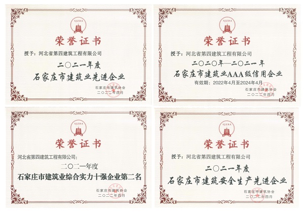 近日,公司在建筑施工領(lǐng)域再獲表彰。經(jīng)專家組嚴(yán)格評(píng)審,石家莊市建筑協(xié)會(huì)研究決定,授予公司2021年度“石家莊市建筑業(yè)綜合實(shí)力十強(qiáng)企業(yè)”“石家莊市建筑業(yè)AAA級(jí)信用企業(yè)”“石家莊市建筑業(yè)先進(jìn)企業(yè)”“安全生產(chǎn)先進(jìn)企業(yè)”,四項(xiàng)榮譽(yù)在獲獎(jiǎng)榜單中均名列前茅。同時(shí),張新煜被評(píng)為“優(yōu)秀企業(yè)經(jīng)理”、梁復(fù)被評(píng)為“優(yōu)秀安全總監(jiān)”、陳增順被評(píng)為“優(yōu)秀總工程師”、李青等22人被評(píng)為“優(yōu)秀項(xiàng)目經(jīng)理”,聶玉朝等2人被評(píng)為“安全生產(chǎn)先進(jìn)工作者”。