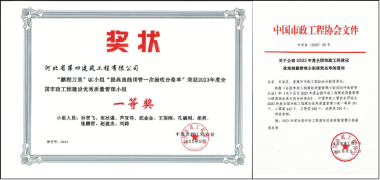 9月18日,公司收到中國市政工程協(xié)會《關(guān)于公布2023年度全國市政工程建設(shè)優(yōu)秀質(zhì)量管理小組獲獎名單的通知》文件,公司推薦參賽的成果獲得一等獎。