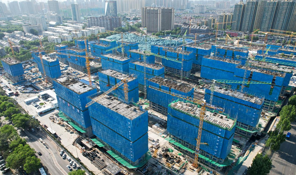 目前,項目36棟住宅樓主體結構施工已完成80%,其中D區(qū)1#、2#樓已封頂,進入二次結構施工階段,并同步穿插機電管線及設備安裝;地下車庫施工完成55%。