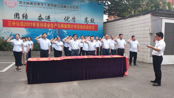 9月18日上午,三分公司組織機關全體職工在分公司院內(nèi)舉行了第十八次“百日安全生產(chǎn)無事故倒計時”活動啟動儀式,分公司經(jīng)理李書偉帶領職工進行安全宣誓,隨后大家在印有“履職盡責,嚴細管控”活動主題的條幅上簽名。各項目部也相繼開展了倒計時活動啟動儀式。