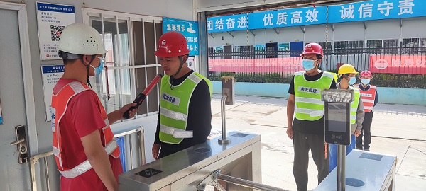 “師傅,對(duì)著酒精測(cè)試儀先吹一下”,5月16日下午2時(shí),八分公司泰安王府花園項(xiàng)目在實(shí)名制通道對(duì)施工工人進(jìn)行上崗前酒精檢測(cè)。