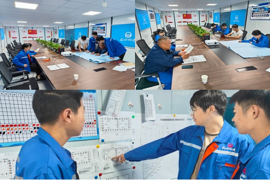 夜晚,成員們針對設(shè)計圖紙與現(xiàn)場施工軸線不一致的情況,通過互聯(lián)網(wǎng)進行學(xué)習(xí),使用 GPS 為平房倉軸線定位。在工地上,成員們按照圖紙內(nèi)容嚴格執(zhí)行地梁箍筋間距、樁頂標(biāo)高等的規(guī)范要求,遇到不明白的地方就向工地上的老師傅請教,共同探討。他們將所學(xué)內(nèi)容與實際工作緊密結(jié)合,形成學(xué)和用的良性閉環(huán)。每周三晚上的問題交流會,以“互動式、聊天式”的學(xué)習(xí)方法,調(diào)動成員學(xué)習(xí)興趣和熱情。大家集思廣益,解決實際問題,激發(fā)創(chuàng)新思維和工作熱情。
